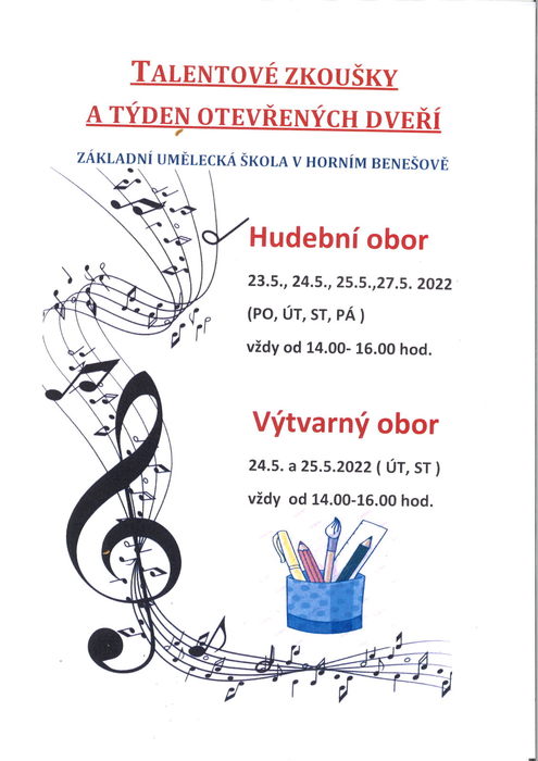 po roce opět přišel čas talentových a přijímacích zkoušek. Stačí vyplnit elektronickou přihlášku. Termíny a požadavky ke zkouškám naleznete zde