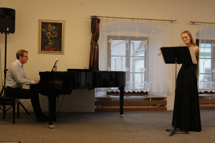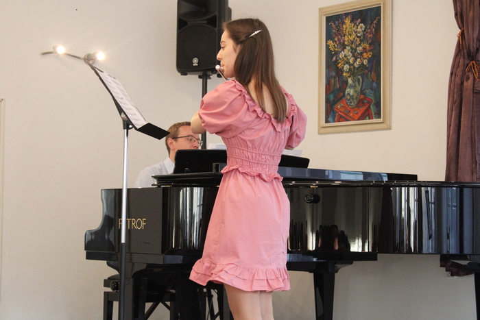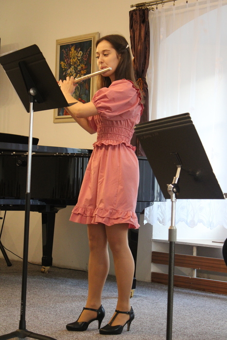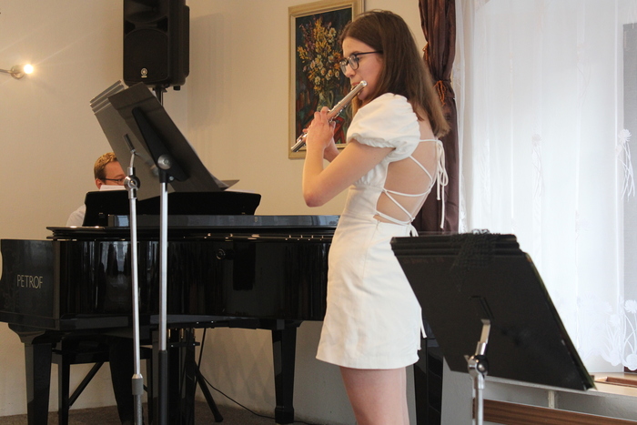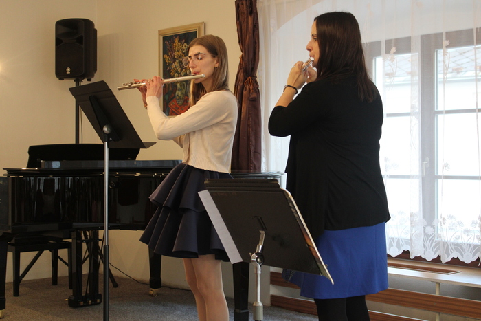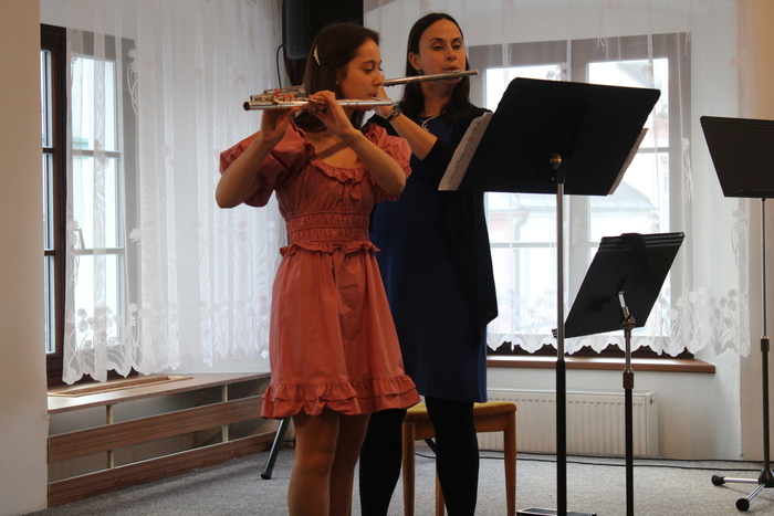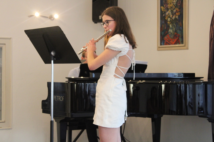 Na absolventském koncertě se představily flétnistky ze třídy Michaely Meca - Laura Leznová, Tereza Bjalončíková, Pavlína Jarošová, Eliška Skarabellová a Anežka Vrbová.